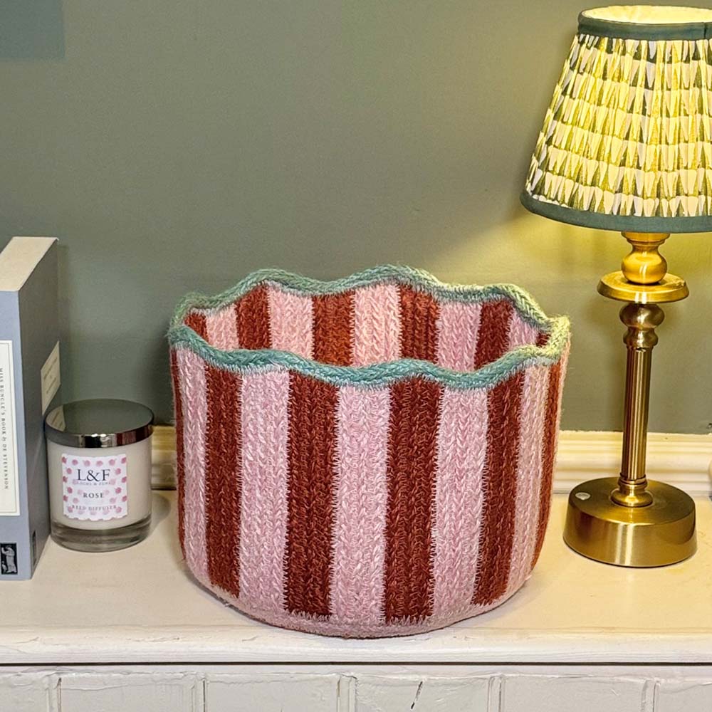 Stripy Scalloped Basket - Strawberry